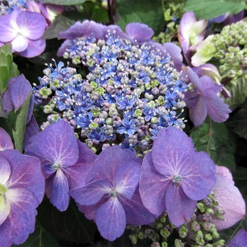 Blueberry Cheesecake Обильноцветущий компактный кустарник. Ремонтантная! Цветет с июня по октябрь на побегах прошлого и текущего года. Красавица! Цветки полумахровые, сине-фиолетового окраса (в подкисленной почве) с кремовой серединкой, собранные в соцветия. Высота растения - 100 см. На зиму требуется укрытие.