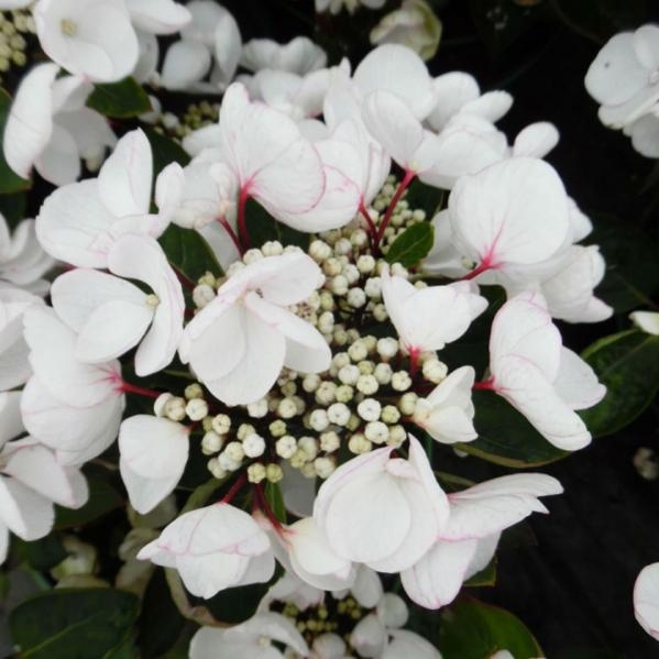 Гортензия (Hydrangea) RENDEZ VOUS Choco Chic(Чоко Чик) (двухцветный) НОВИНКА крупнолистная гортензия из серии Rendez Vous невысокий до 0,6-0,9 м. с красивыми соцветиями состоящими из стерильных и фертильных цветков. НОВИНКА Сорт получен во Франции. Hydrangea macrophylla 'Rendes-vous/ Choco Chic ® Соцветия lace-cap. Стерильные цветки очень крупные, белые, на ярко-красных длинных цветоножках. Контрастно черные стебли. Непрерывное, очень интенсивное цветение с июня по октябрь. Крупная зеленая листва. Высота и ширина 0,6-0,9 м Подходит для срезки и ПАТИО