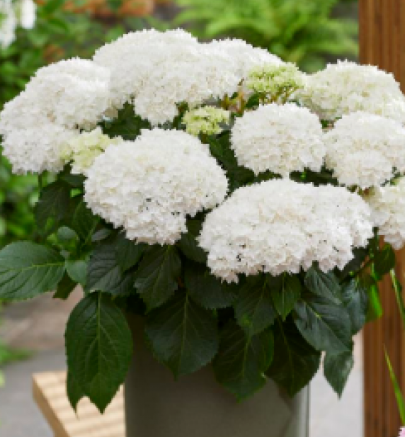 Крупнолистная гортензия, японский гибрид РЕМОНТАТНЫЙ СОРТ, компактного размера, вырастает до 50 см.