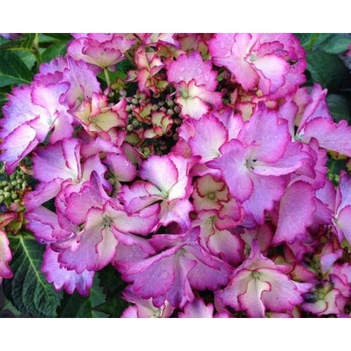 Крупная зеленая листва., к концу цветения приобретает цвет фуксии, Высота - 0.8 метра , диаметр - 0.8 метр