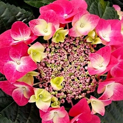 Гортензия Фрисби Хот Пинк – это красивый и компактный сорт, Cоцветия овальной формы, малиново-розовые. Зацветает в июне месяце красивыми малиново-розовыми цветками. Соцветие имеет необычную форму: цветки распускаются по краям соцветия, оставляя в середине зеленоватые не раскрывшиеся бутоны. Соцветия этого сорта имеют диаметр до 30 см и состоят из двух типов цветков: крупных и мелких. Крупные цветки расположены по краям соцветия и имеют розовый оттенок, который может меняться в зависимости от кислотности почвы. Мелкие цветки остаются в середине соцветия и не раскрываются, создавая зеленоватый контраст.