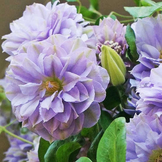 Махровые цветки светло-голубовато-фиолетовые, диаметр — до 10 см.