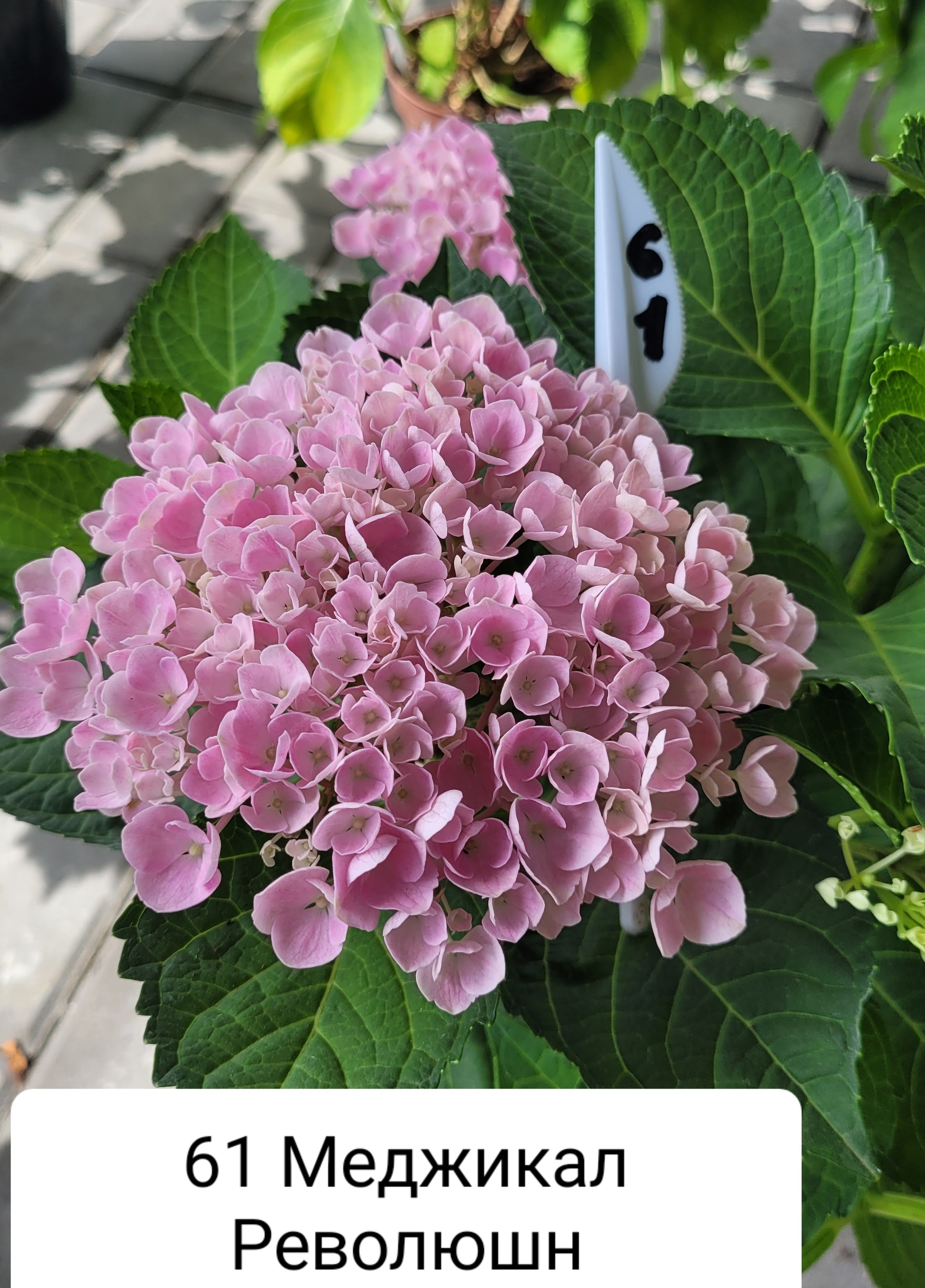 Крупнолистная гортензия (серия Magical) Magical Revolution Мэджикал Революшн обладает умеренной силой роста, прямостоячими кустами высотой до 100-120 см и диаметром около 100 см. Плотная округлая крона состоит из толстых и крепких побегов, покрытых темно-зелеными листьями, сменяющими осенней порой летний цвет на желтовато-бордовые тона. Побеги отлично держат соцветия — не гнутся под тяжестью налитых влагой цветов после дождя.