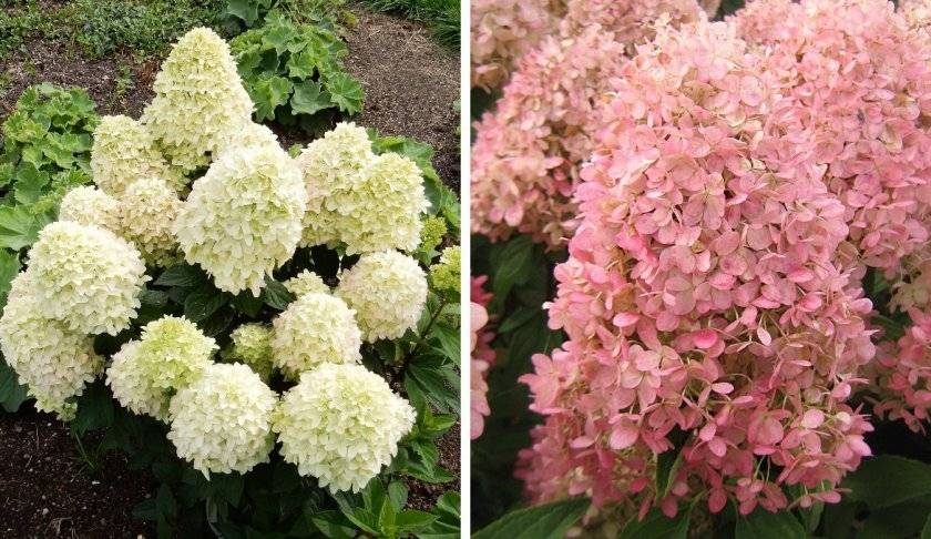 Цветки крупные, четырёхлепестковые, до 2,5 мм в диаметре. Меняют окрас в течение летне-осеннего сезона: изначально соцветия белые, кремовые или нежно-салатовые, в середине лета сменяются нежно-розовыми, а осенью — малиновыми или насыщенно-розовыми.