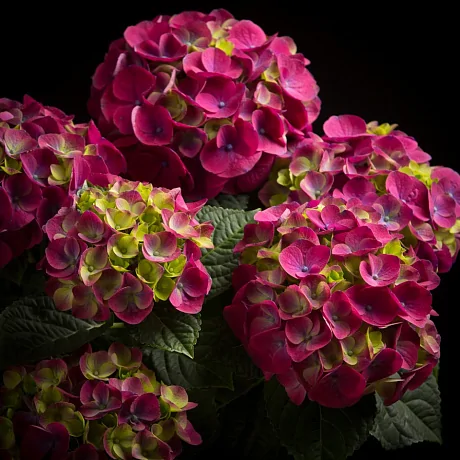 Гортензия СЕРИЯ Royalty Collection- Ningbo крупнолистная Ningbo (МАЛИНОВЫЙ) Это один из самых декоративных видов гортензий благодаря своим большим и ярким соцветиям. Цветение начинается в июне и продолжается до конца лета или начала осени (сентябрь). Интенсивность цветения обильная, а продолжительность длительная. Цветение происходит на побегах текущего года. Кроме того, этот сорт гортензии способен изменять свою окраску в зависимости от типа почвы и условий выращивания Это делает его еще более интересным для любителей растений. Вид : крупнолистная Высота, см : в открытом грунте достигает 60-80, при посадке в контейнеры вырастает до 30-50 Диаметр, см : до 100 Диаметр, см : 15 Основная окраска цветков : красная Окраска цветков : светло-лаймовая, по мере цветения меняет цвет на красный или фиолетовый Диаметр цветков : 2 см Интенсивность цветения : обильное Период цветения : июнь-сентябрь Продолжительность цветения : продолжительное