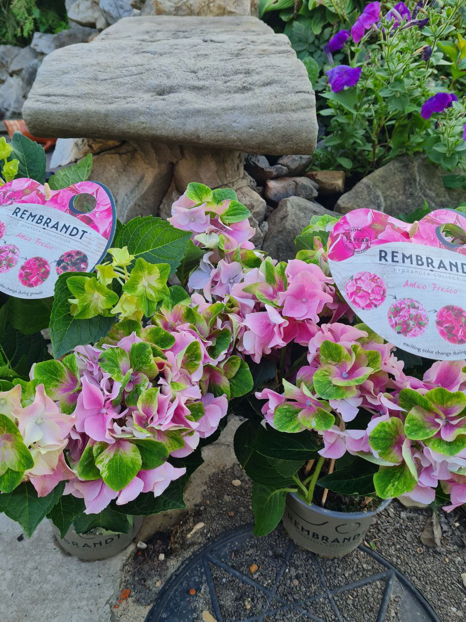 ФАНТАСТИЧЕСКАЯ НОВИНКА из серии REMBRANDT. Европа2026 ЭТОТ СОРТ отличаются удивительными, меняющимися по мере цветения окрасками соцветий. Образуют компактные обильноцветущие все лето кусты с крепкими побегами и здоровой листвой. Отлично подходят для контейнеров и патио. Hydrangea macrophylla Antico Fresco Соцветия крупные. Цветы - лилово-зелено-розовые. Непрерывное, очень интенсивное цветение с июня по октябрь. ПОД ЗАКАЗ НА МАРТ 2026-5ШТ