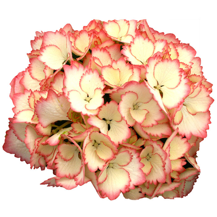 Гортензия крупнолистная Коктейль («Rendes-vous/Cocktail)Цветки бахромчатые, полумахровые, в начале цветения кремово-лимонно-белые с ярко-розовой каймой. Требования к почве: Любит влажные, богатые гумусом почвы, но адаптируется практически на любых, даже песчаных. Сорт очень отзывчив на подкормки, при регулярном внесение удобрений выдает необычайно пышное цветение. Требования к освещенности: Предпочитает полутень. Зимостойкость: Зимостойка. Для более раннего Гортензия крупнолистная «Рандеву/Коктейль» («Rendes-vous/Cocktail ®») цветения нуждается в легком укрытии слоем листьев и земли. Высота: 80 см - 90 см Ширина: 80 см - 90 см