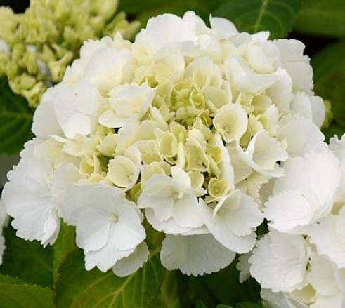 Гортензия Shakira сорт с белыми крупными соцветиями.