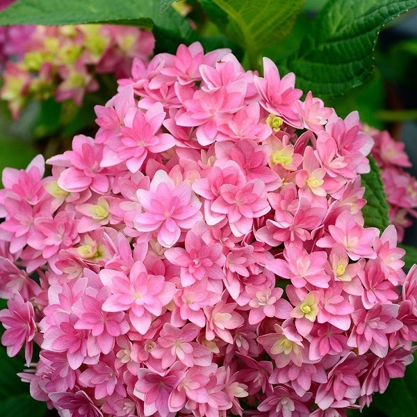 Гортензия серии Formidable : "Stellar Pink" Цветы - махровые, лепестки-удлиненные, заостренные, розовые, светлеющие к краям, приподнятые вверх. Высота куста- 1 -1,5 м. ремонтантный сорт