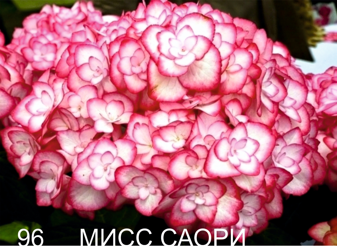 Махровые цветы, бело- розовый биколор, слегка волнистые края. Листва- темно-зеленая с фиолетовым отливом. Стебли прочные. Подходит для срезки. Гортензия крупнолистная You & Me Miss Saori - уникальный сорт японской селекции, покоривший сердца садоводов всего мира. Ее роскошные махровые цветы сочетают белоснежную основу с изящной розовой каймой Окрас